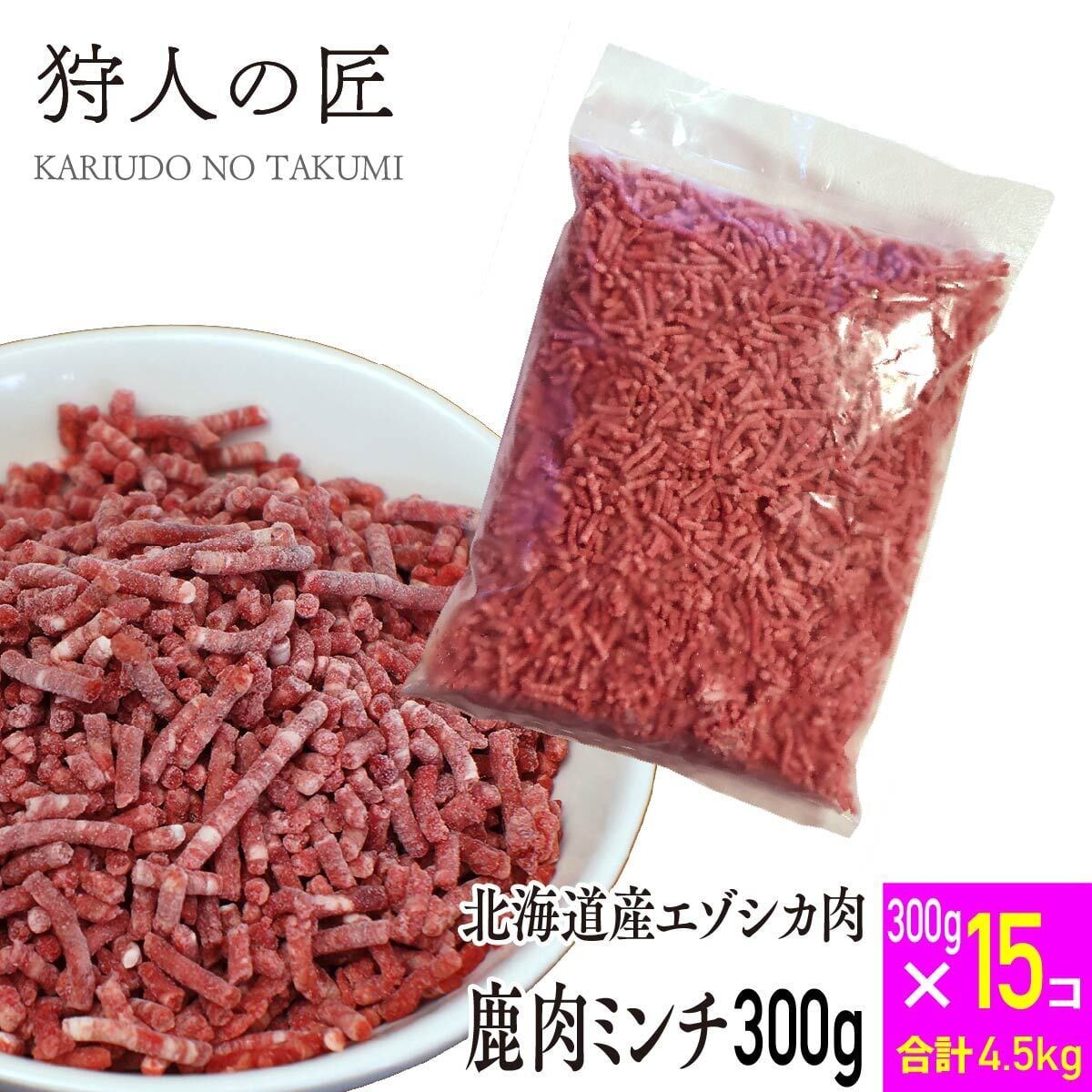 【送料無料】【北海道稚内産】【ペット用】エゾ鹿肉 ミンチ 300g×15パック+おまけ付き